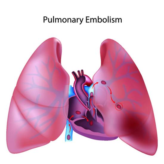 | Лёгочная эмболия (ЛЭ) | Закупорка лёгочной артерии или её ветвей тромбом, оторвавшимся от места образования. | Высокая |